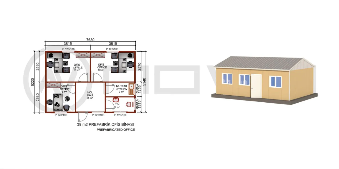 39 m² Prefabrik Ofis