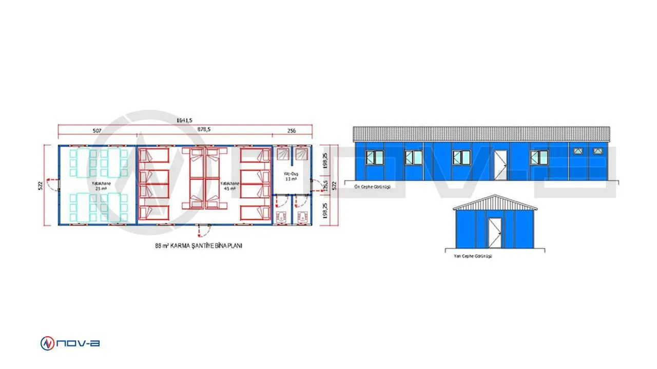 88 m² Prefabrik Karma Şantiye
